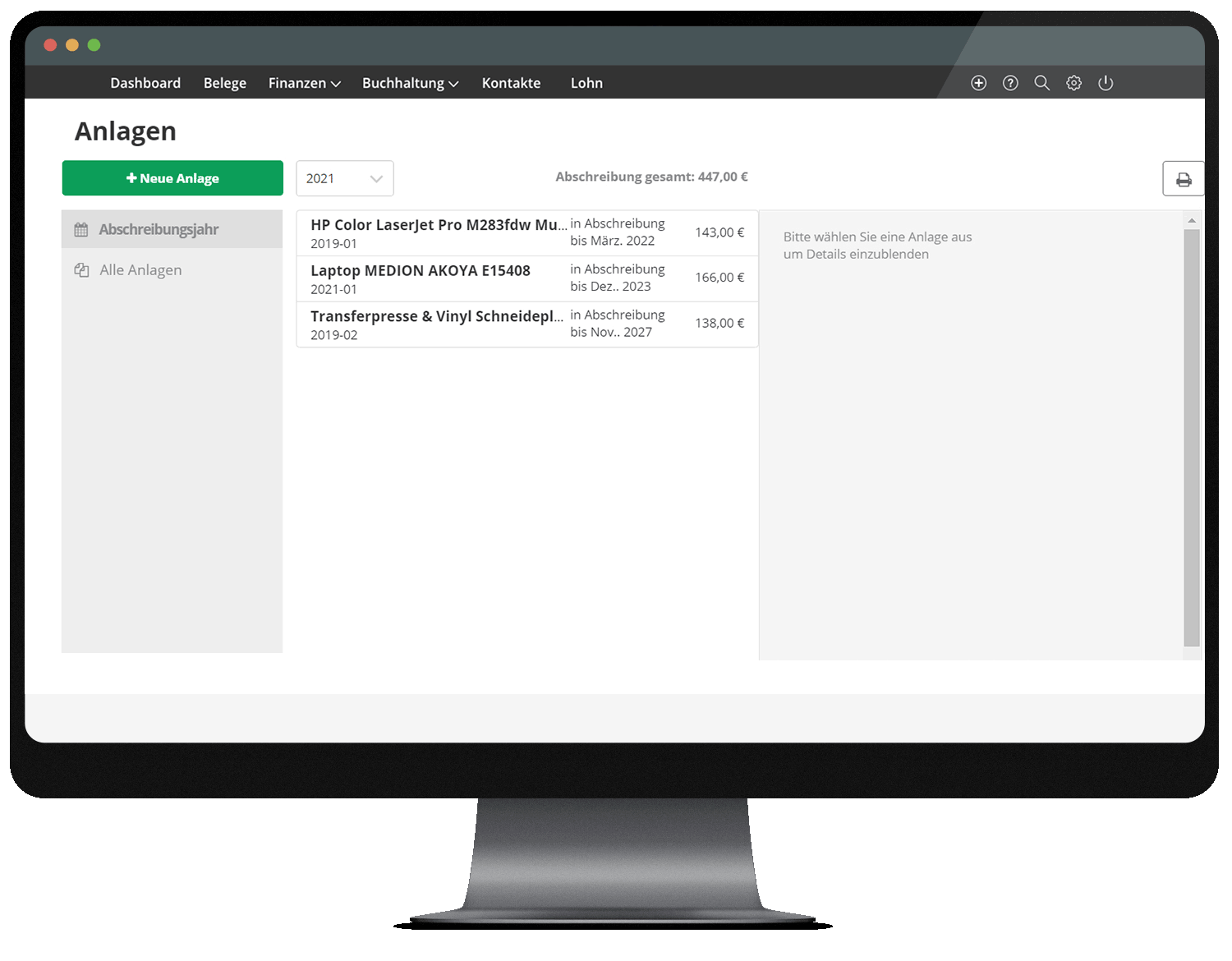 Mit wenigen Klicks Abschreibungen von Anlagegütern buchen und übersichtlich verwalten