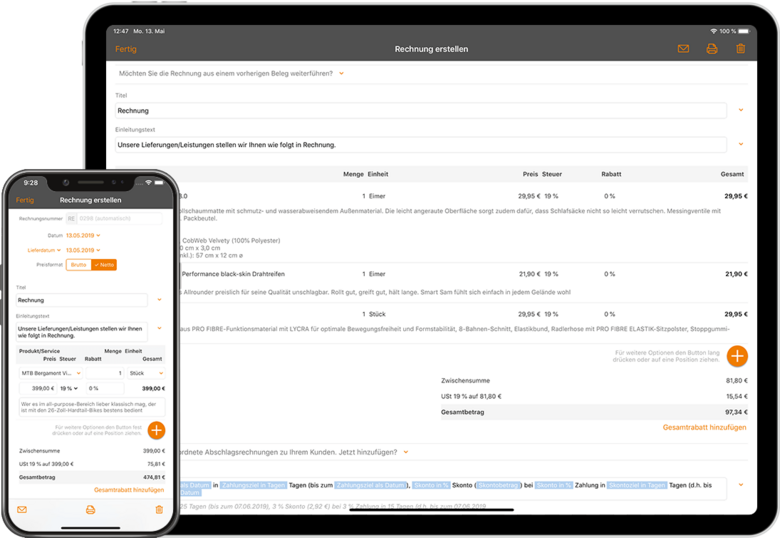 Angebote, Rechnungen und Lieferscheine lassen sich auch unterwegs erstellen, versenden und direkt vor Ort unterschreiben.
