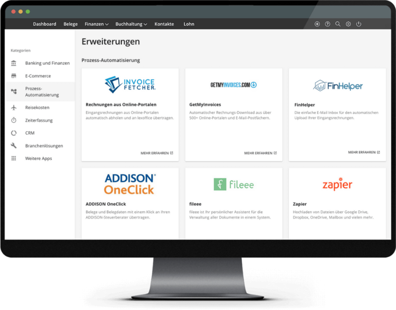 - Anbindung an GetMyInvoices, invoicefetcher oder fileee