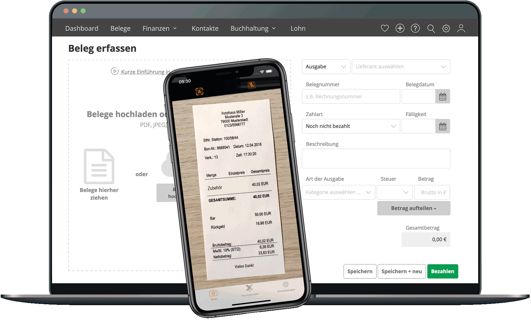 Mit Lexware Office kannst du Papierbelege fotografieren, als digitale Belege hochladen und damit die Vorteile einer digitalen Buchführung nutzen. Durch den Upload in Lexware Office wird der Beleg digital, rechtssicher und GoBD-konform gespeichert.