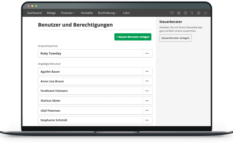 Lexware Office bietet dir verschiedene Benutzer und Berechtigungen, die zum Arbeitsalltag deines Unternehmens passen.