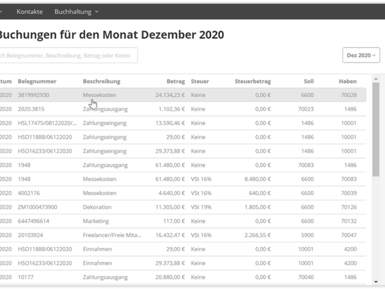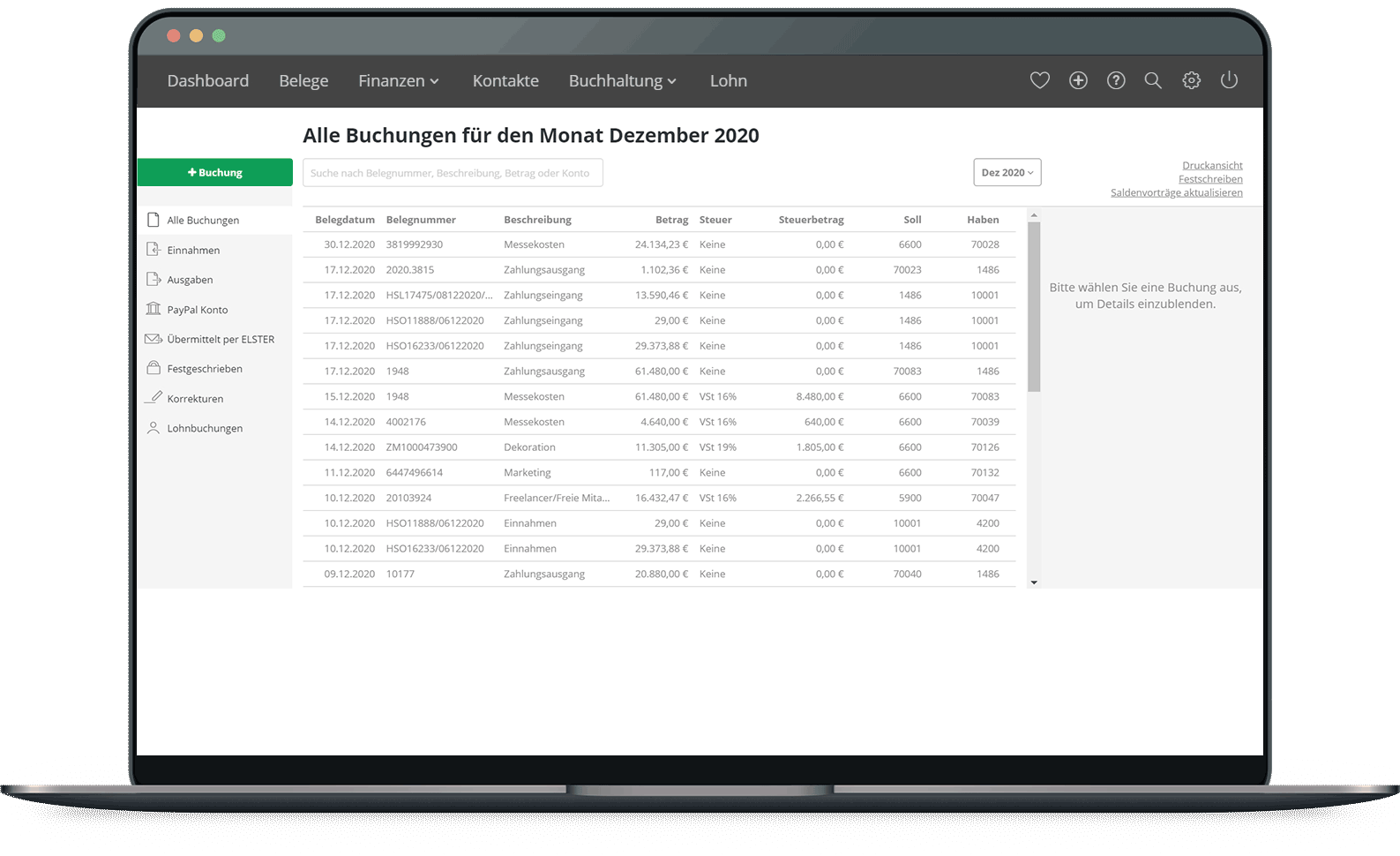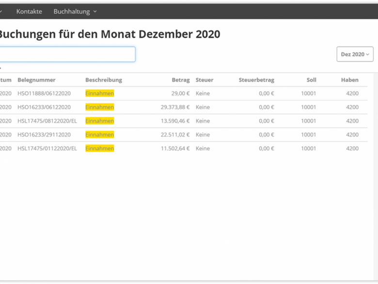 - Alle Buchungssätze zentral und übersichtlich abrufen