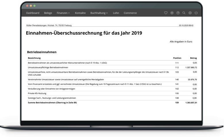 Abhängig von deiner Unternehmensform erstellt die Software automatisch deine EÜR oder GuV.