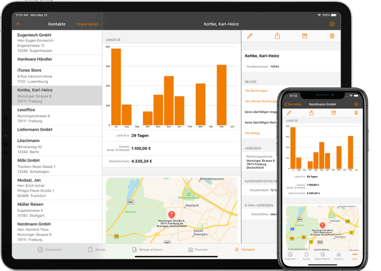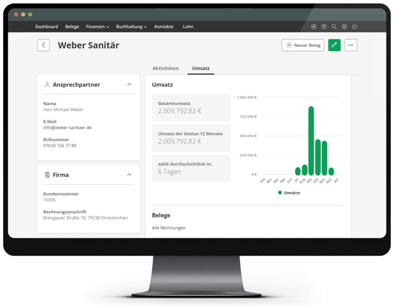 Mit Lexware Office verwaltest du nicht nur die Kontaktdaten deiner Kunden und Lieferanten. Die Online-Unternehmenslösung zeigt dir auch, wie viel Umsatz ein Kunde generiert oder welche Kosten mit einem Lieferanten verbunden sind. So hast du alle wichtigen Daten immer im Blick.