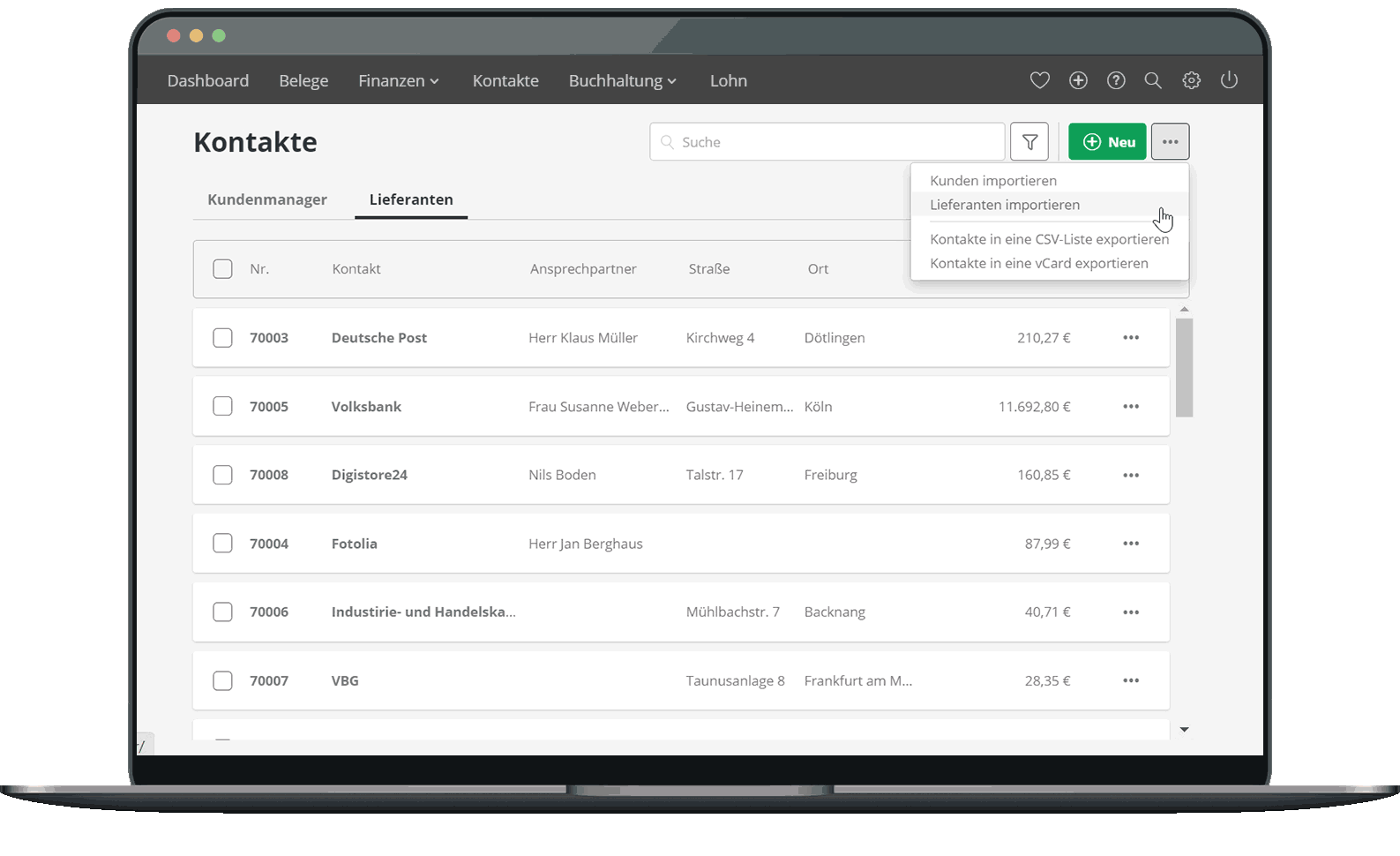 Verwalte deine Kunden- und Lieferantenkontakte, einfach und unkompliziert mit Lexware Office.