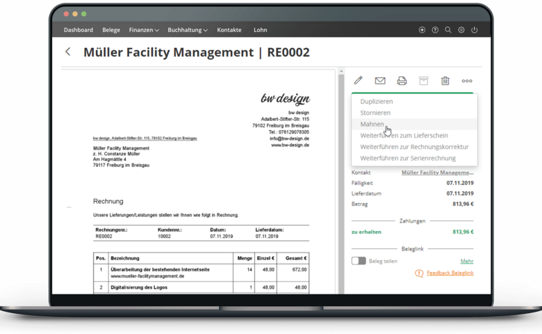 - Mahnungen in wenigen Klicks erstellen