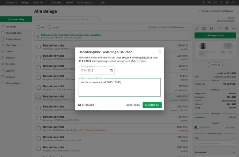 Uneinbringliche Forderungen unkompliziert ausbuchen
