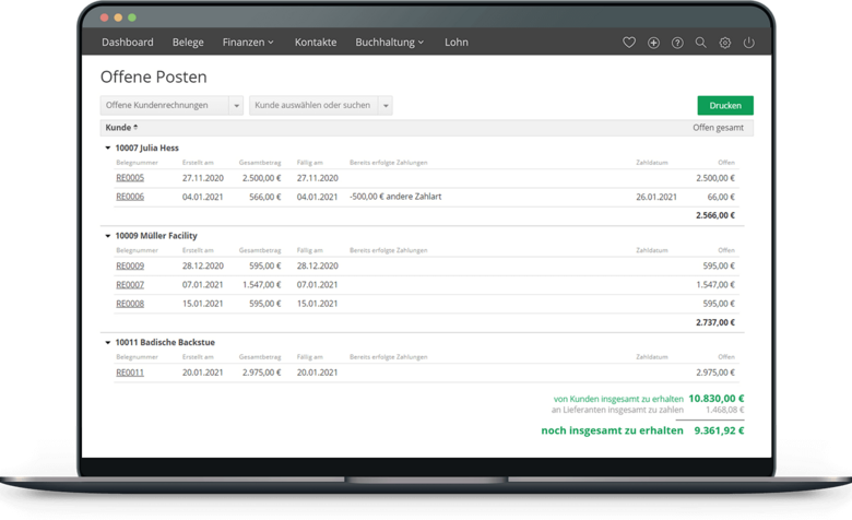 - Übersicht über offene Kunden- und Lieferantenrechnungen