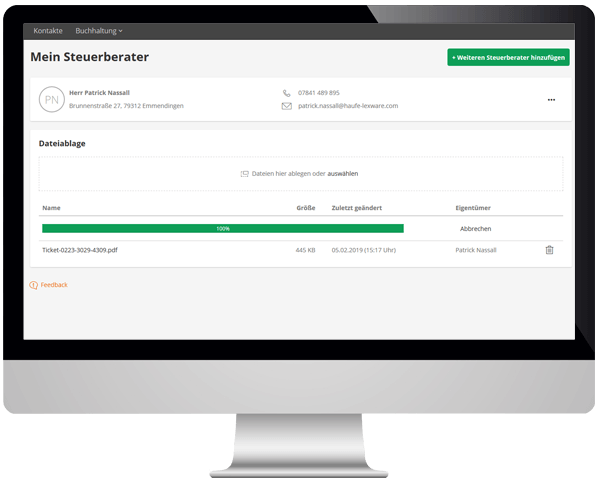 Mit Lexware Office machst du es deinem Steuerberater leicht: Du kannst deine Offene-Posten-Verwaltung entweder per eigenem Zugang oder über den praktischen Datenaustausch direkt zur Verfügung stellen.