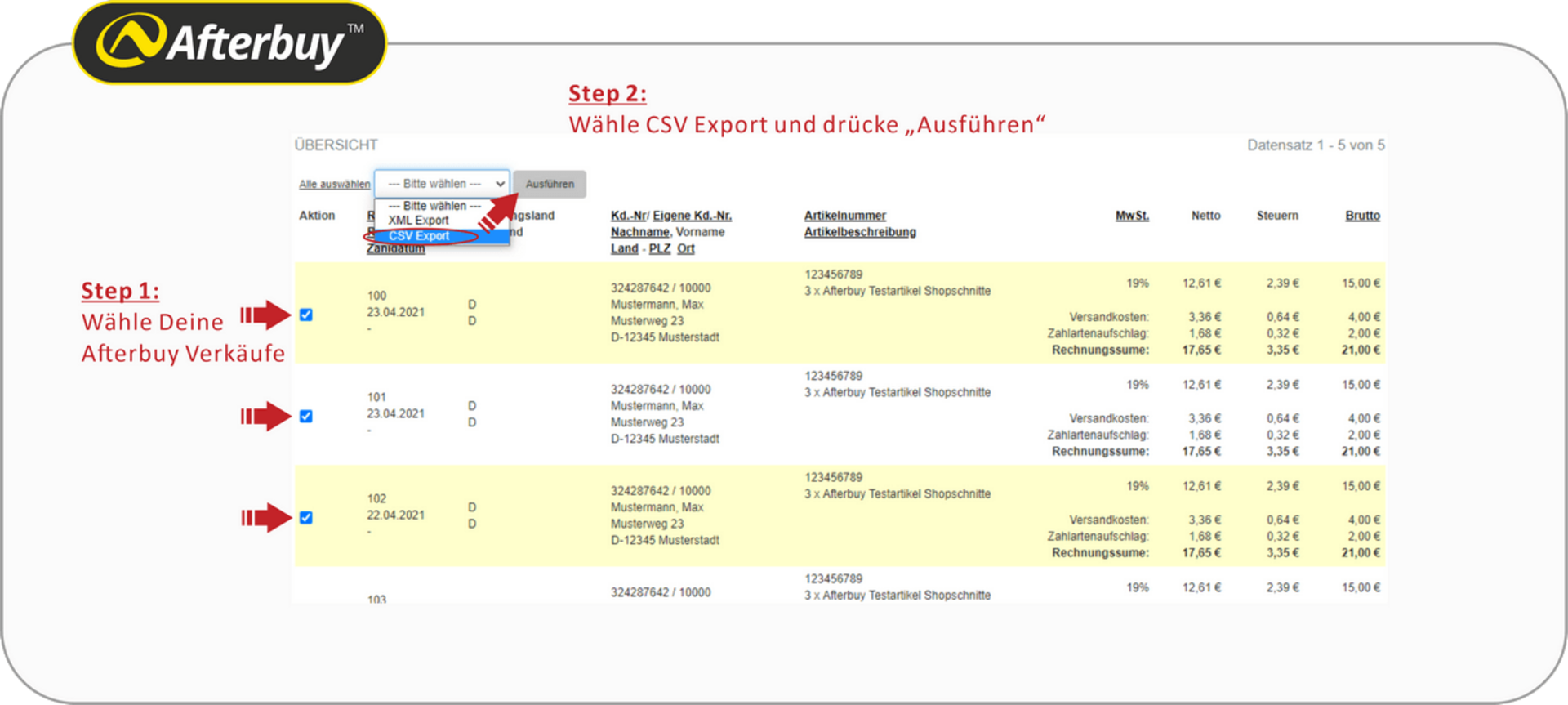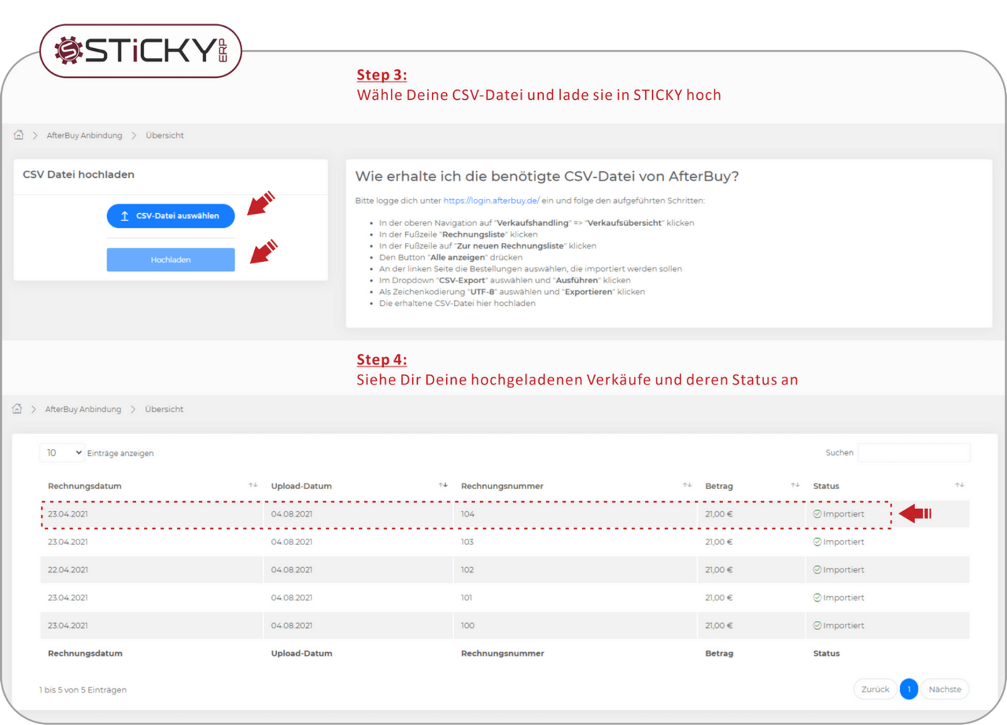 - Optional CSV Import deiner Afterbuy Rechnungs- und Kundendaten