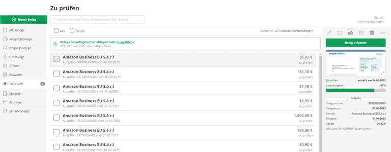 Kurz nachdem eine Amazon Business Rechnung erstellt wurde, importiert die Schnittstelle die Eingangsrechnung in Ihre Lexware Office Buchhaltung.
