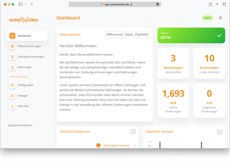 autoMahntion ist die flexible Lösung für automatisierte Zahlungserinnerungen und Mahnungen. Geld und Zeit werden durch fristgerechte Zahlungseingänge der Kunden gespart.