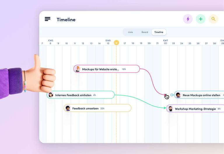 Die visuelle Aufgabenplanung stellt all deine Projektaufgaben in einer übersichtlichen Zeitplanung mit Meilensteinen und Abhängigkeiten dar. Damit ist allen klar, wer was erledigt und welche To-Dos am dringendsten sind – so verpasst ihr keine Deadline mehr.