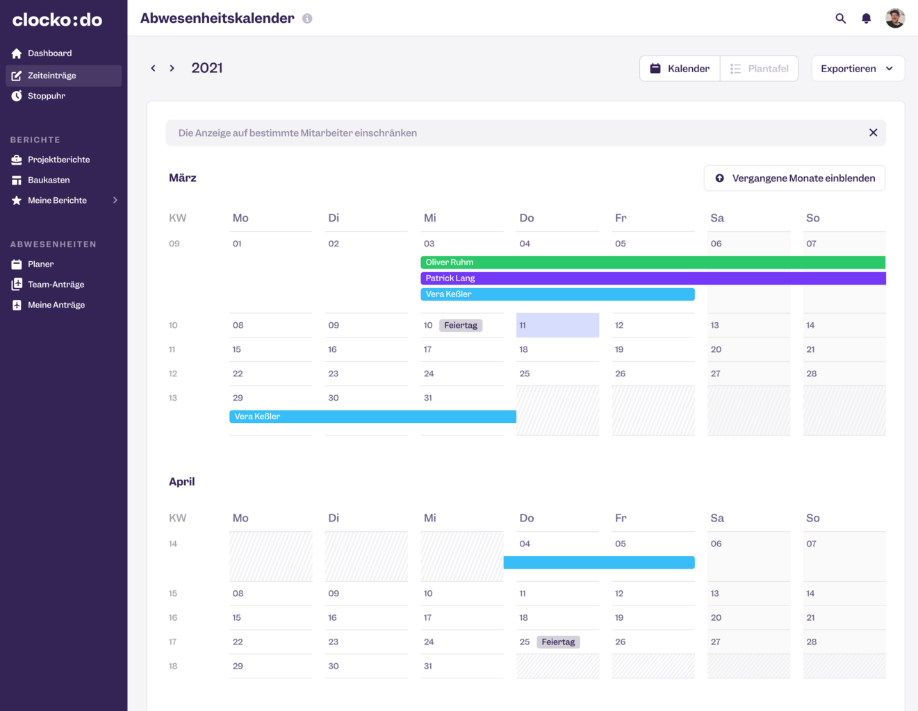Arbeitszeiten können nach Kunden, Projekten und Aufgaben ausgewertet werden, während Überstunden, Urlaubstage und Abwesenheiten der Mitarbeiter stets im Blick bleiben. Clockodo 14 Tage kostenfrei testen.