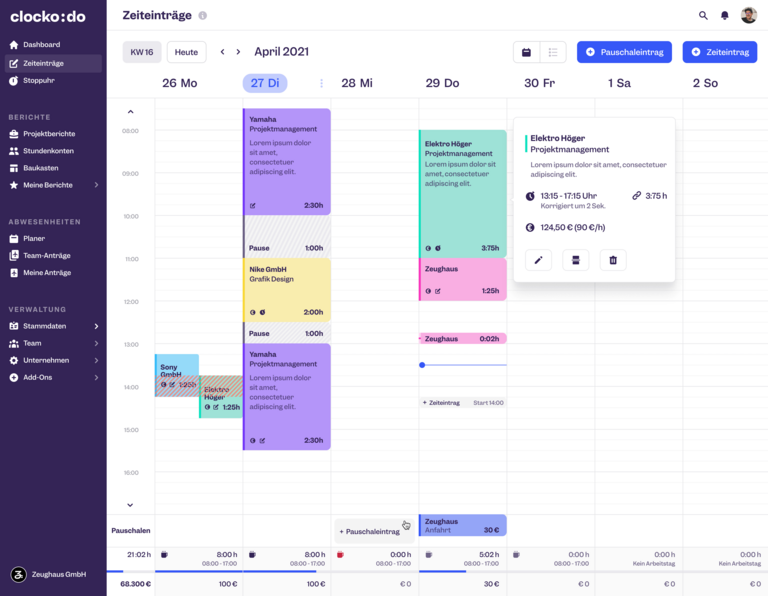 - Mit Clockodo Arbeitszeiten getrennt nach Kunden, Projekte buchen