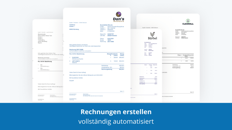 - Weniger Klicks, weniger Arbeit: Das Erstellen einer Rechnung dauert mit easybill nur wenige Sekunden.
