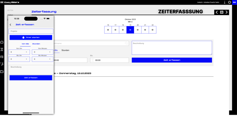 - Mobile Zeiterfassung: Optimiere dein Arbeitszeitmanagement spielend leicht – Mit EasyWorx behältst du die Zeit im Griff! Effiziente Zeiterfassung für Handwerker von heute.