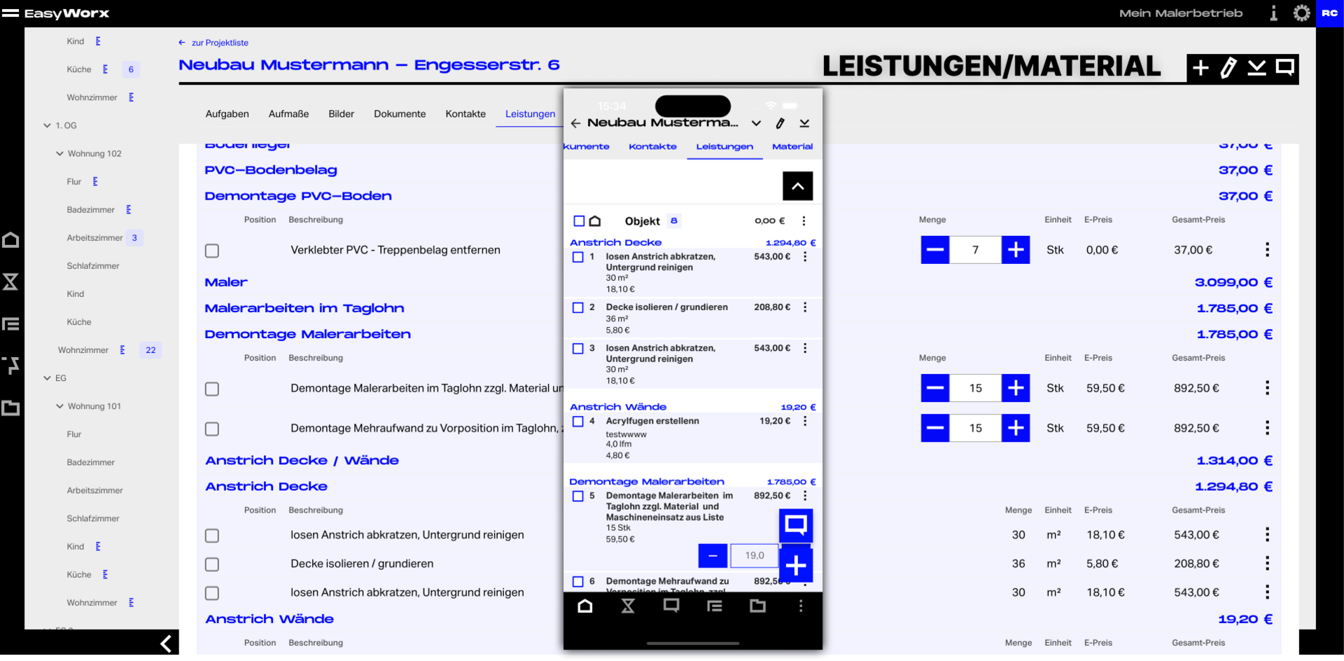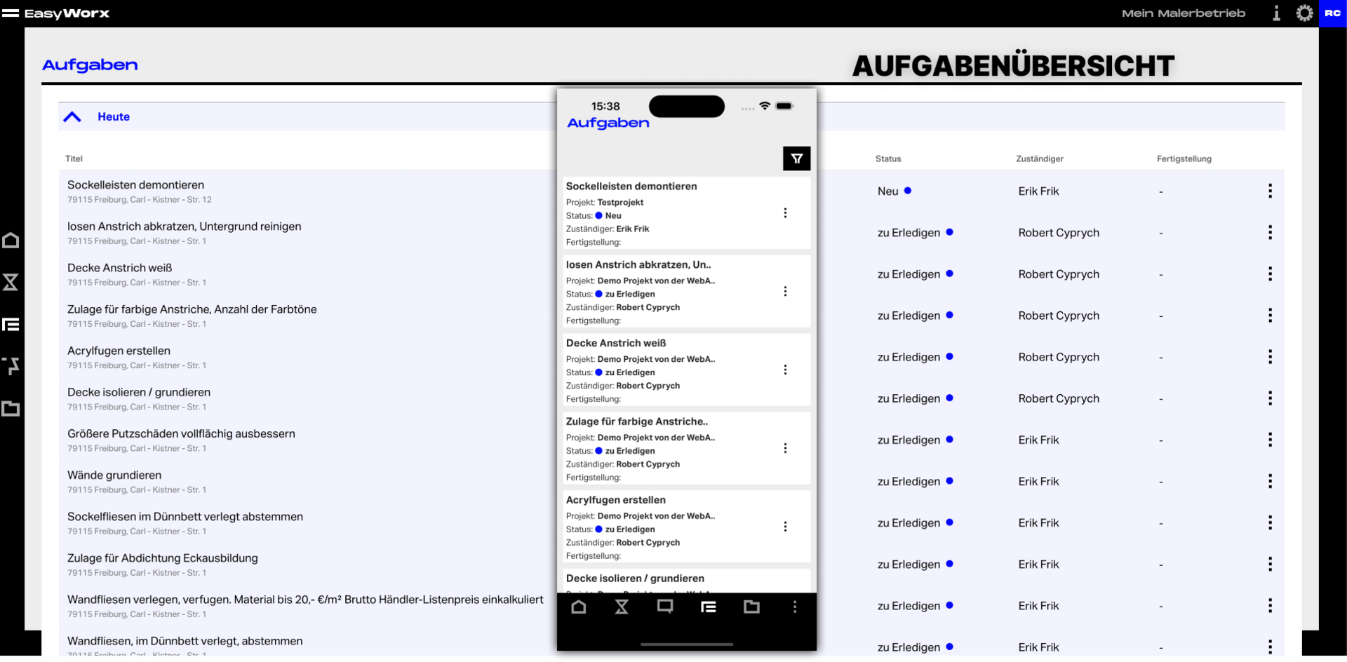 EasyWorx optimiert den Arbeitsalltag als umfassende Handwerksmanagement-Plattform mit mobiler App. Durch die cloudbasierte Architektur sind sämtliche Projektdaten und Auftragsdetails jederzeit und überall abrufbar – sei es am Bürocomputer oder mobil via Tablet oder Smartphone direkt auf der Baustelle. EasyWorx orientiert sich eng an den Bedürfnissen von Handwerkern verschiedenster Gewerke und wurde in intensiver Zusammenarbeit mit Profis aus der Praxis für die Praxis entwickelt. EasyWorx wird durch regelmäßige Usability-Checks und im Austausch mit Handwerkern, Baustofffachhändlern und Industrien ständig optimiert.
