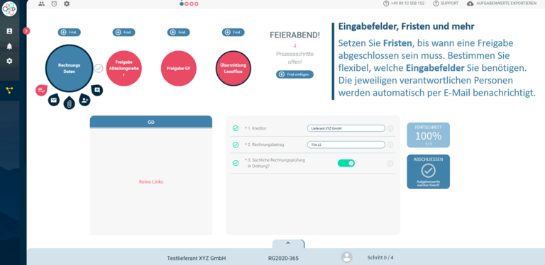 Ja! Flowers ist die flexibelste Freigabe-Software, die es gibt. Es ist möglich den Prozess ganz nach Belieben anzupassen, ganz ohne Aufwand oder Zusatzkosten. Du kannst auch deinen Stempel 1:1 digital in Flowers anlegen in Form von Eingabefeldern, die von den Beteiligten Personen auszufüllen sind – bspw. Kostenstellen, Projekt-Nummern, Kontierungen etc.