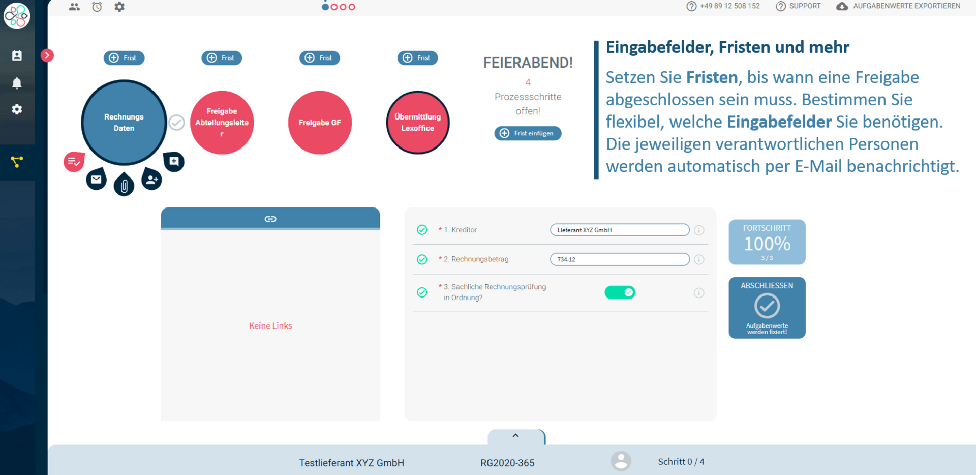 - Automatische Beleg-Übermittlung an Lexware Office nach erfolgreicher Freigabe