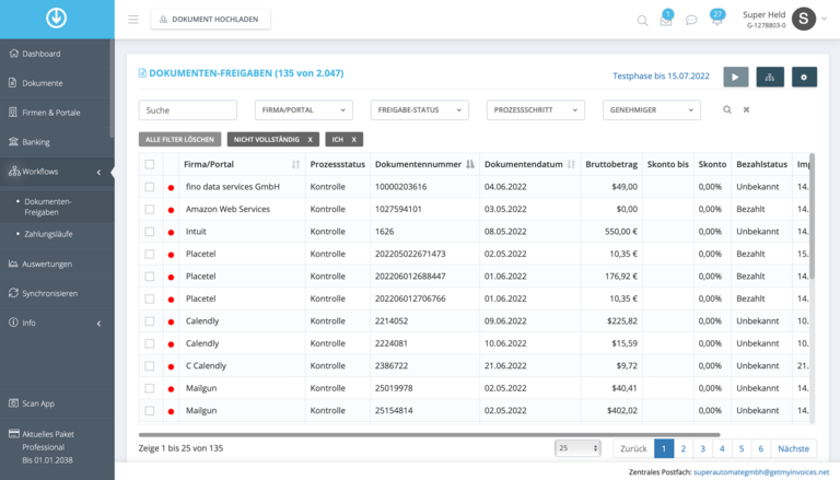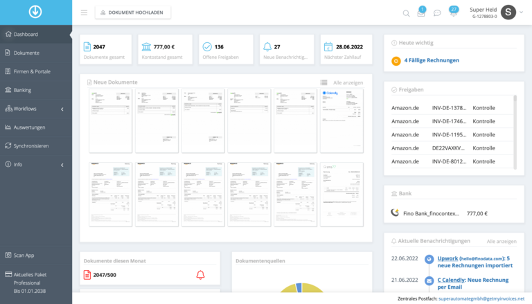 GetMyInvoices ist ein Online-Service, der Rechnungsverwaltung und -automation anbietet, um Kreditorenbuchhaltungsprozesse zu vereinfachen. Die Lösung erfasst und verarbeitet Rechnungen vollautomatisch aus einem breiten Angebot von Quellen. GetMyInvoices bietet nahtlose Integrationen zu führenden Buchhaltungssystemen und ist daher eine umfassende Komplettlösung für die Rechnungsverwaltung, welche Unternehmen dabei hilft ihre vorbereitende Buchhaltung durch Automatisierung zu optimieren und Zeit sowie Kosten zu sparen.
