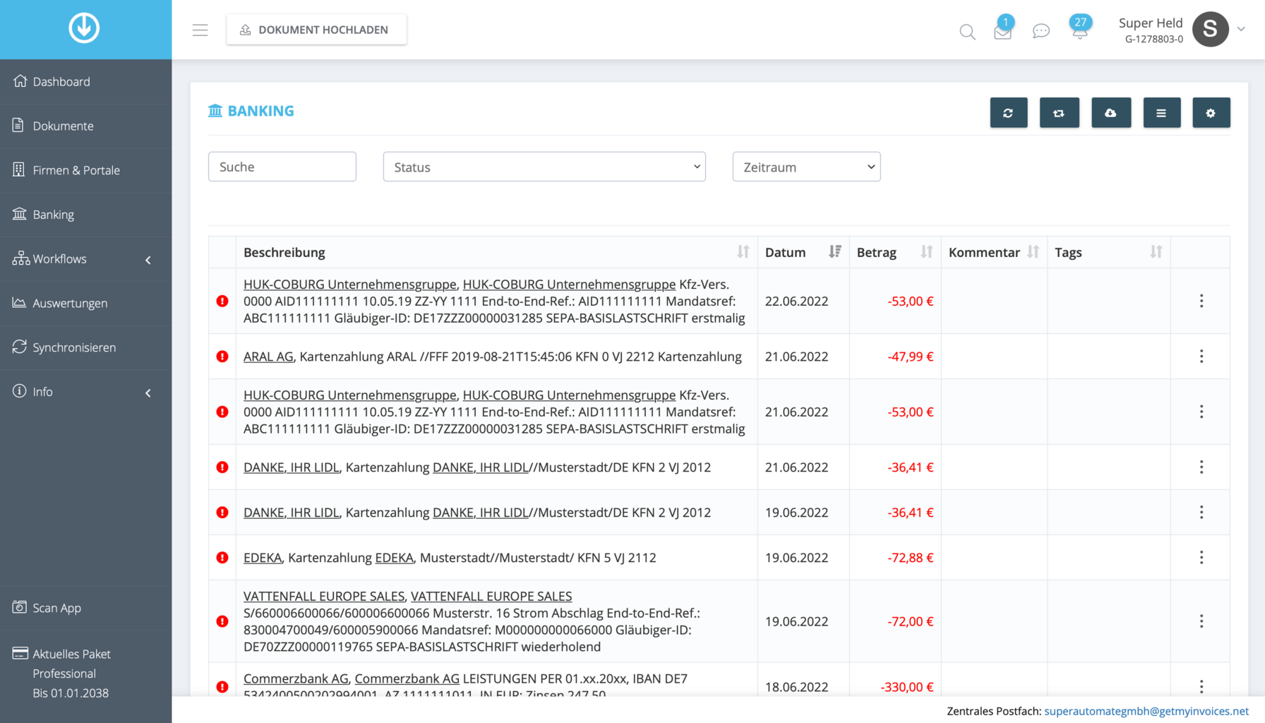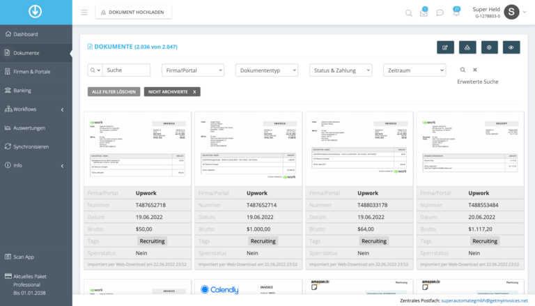 - Automatischer Abruf von Rechnungen aus Online-Portalen