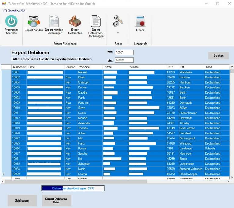Durch die direkte Datenbank-Verbindung zur JTL-WAWI können neu hinzugekommene Kunden oder Lieferanten selektiert und mit nur einem Klick als Kontakte an Lexware Office übertragen werden.