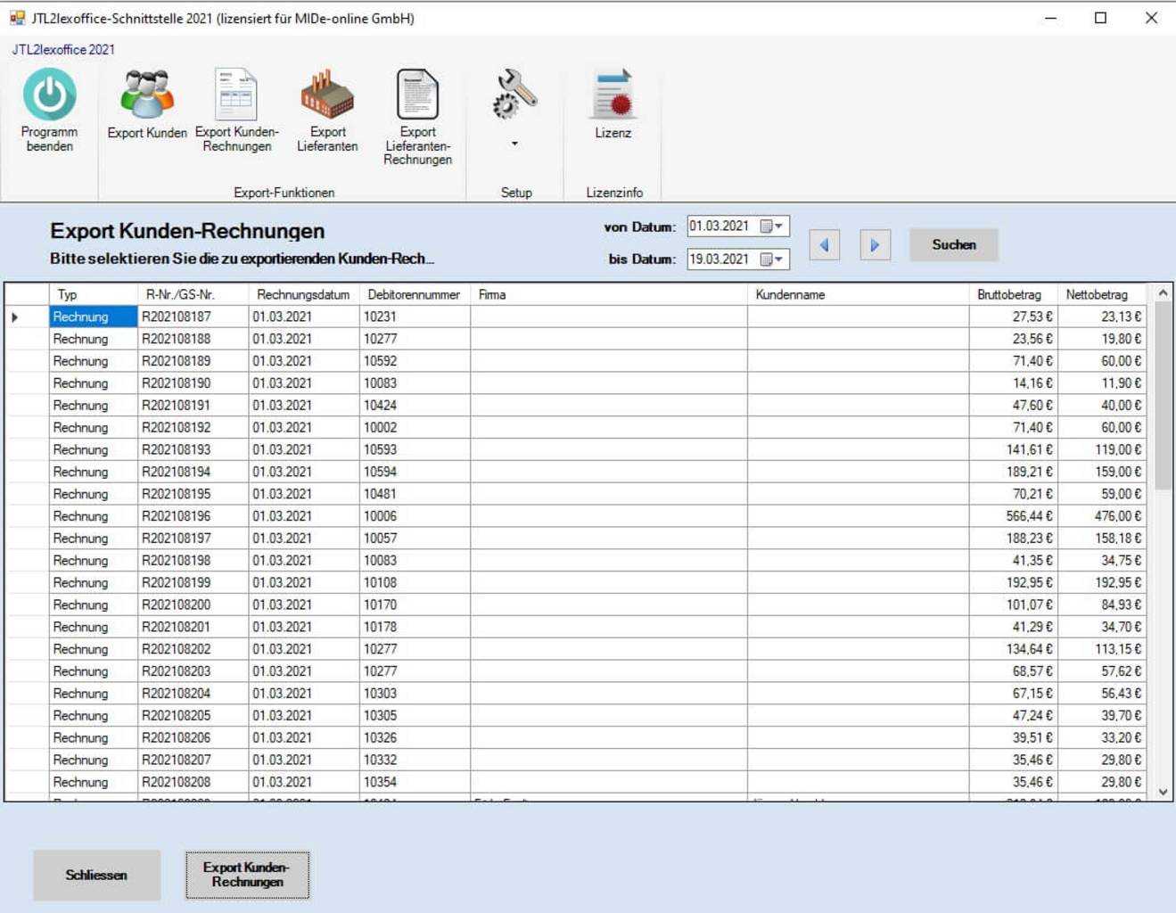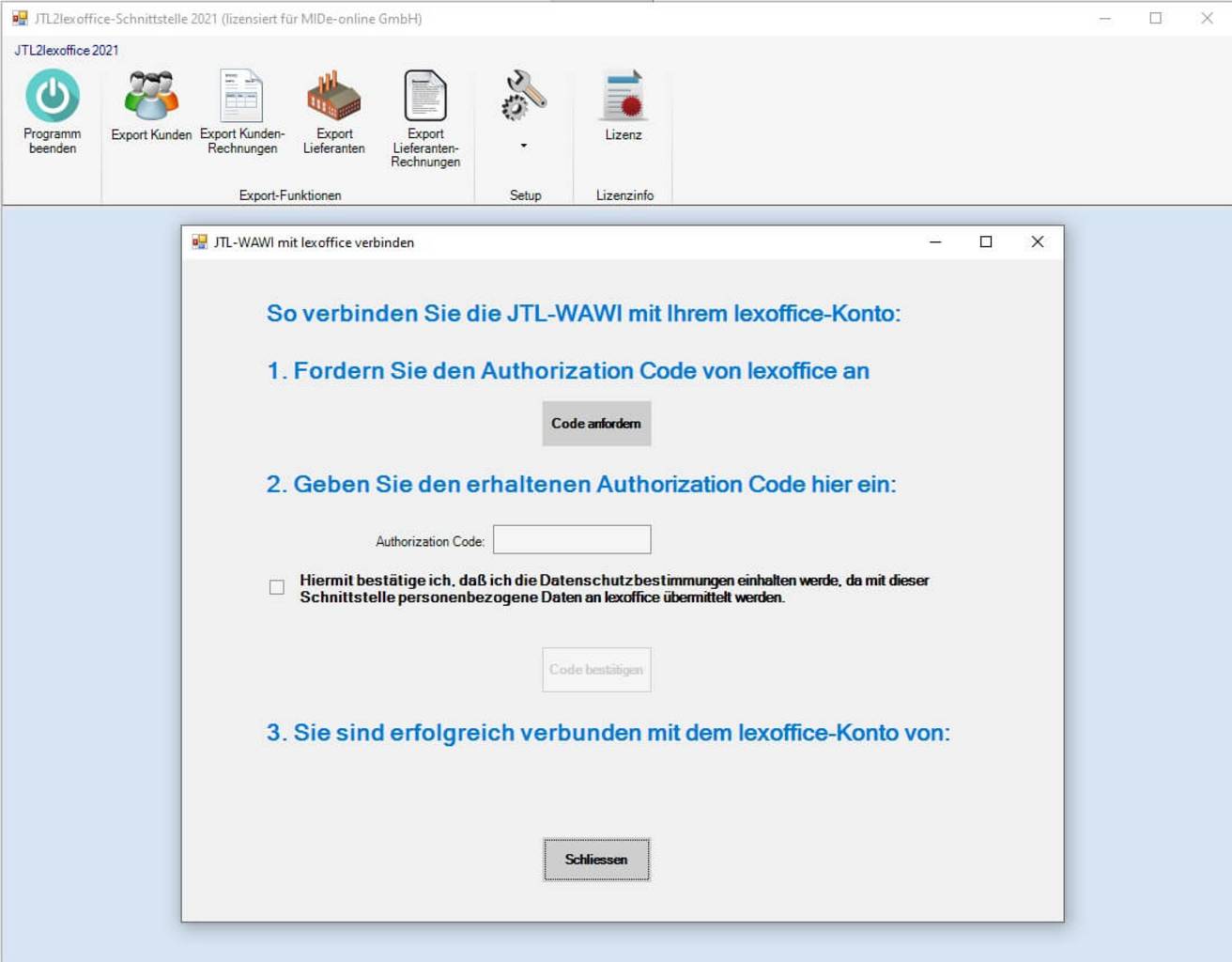 Die in der JTL-WAWI erzeugten Kundenrechnungen bzw. Gutschriften werden über einen frei definierten Zeitraum ausgewählt und inklusive der von der JTL-WAWI erzeugten Belegbilder nach Lexware Office übertragen.