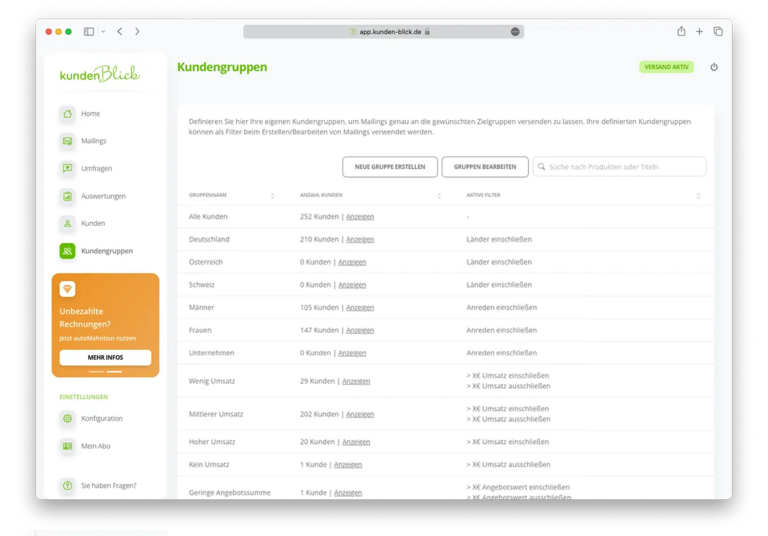 - Sieh Dir eine Übersicht über Deine Kunden an und erkenne auf einen Blick deren Zugehörigkeit zu verschiedenen Kundengruppen.