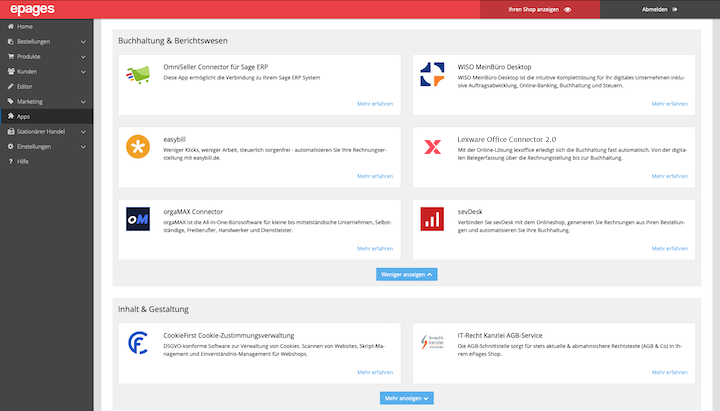 Lexware Office ist direkt im App Store des ePages-Shops integriert. Dadurch können Shop-Daten mühelos verknüpft und für eine komfortable Buchhaltung synchronisiert werden.