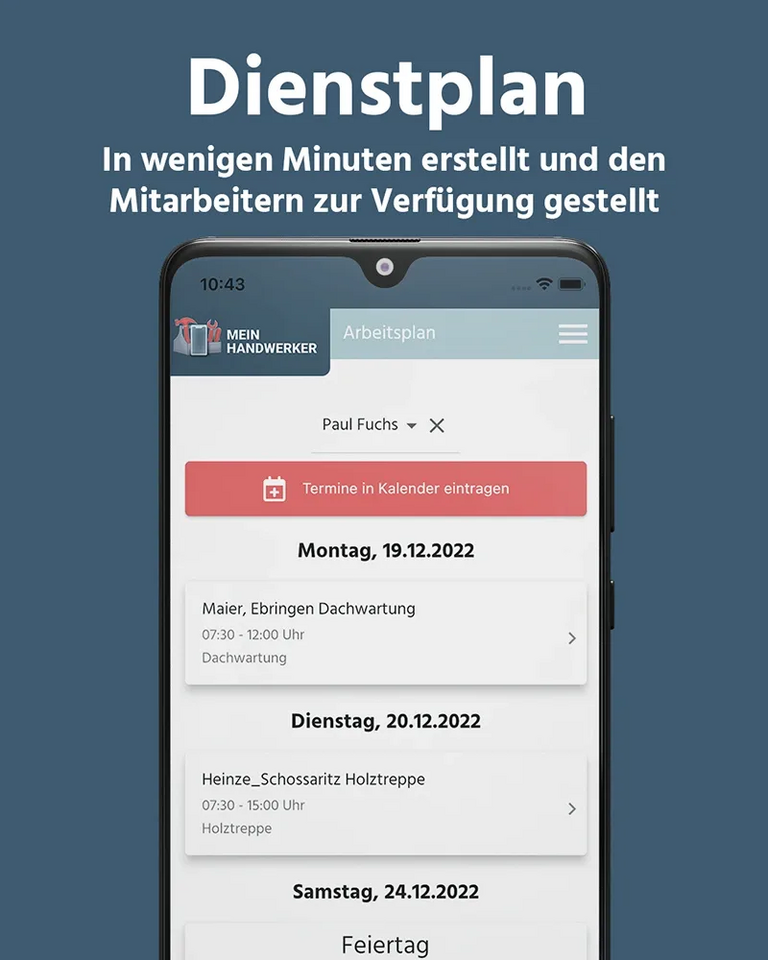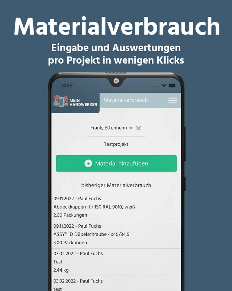 App mit Zeiterfassung, Rapporten, Bautagebuch, u.v.m.! MeinHandwerker wurde von Handwerkern für Handwerker entwickelt und zeichnet sich durch Ihre einfache Bedienung aus.