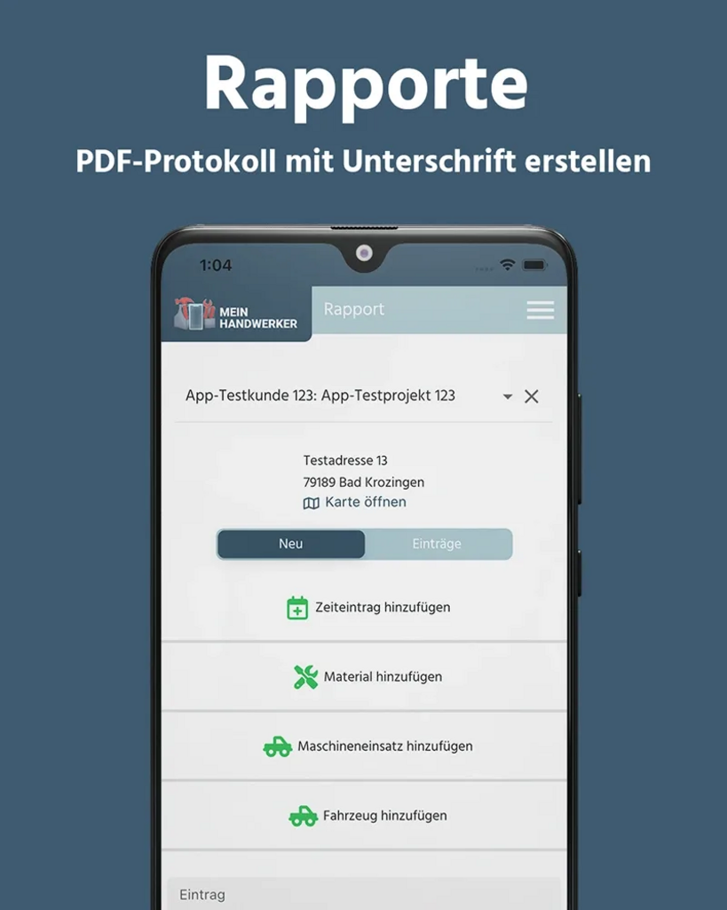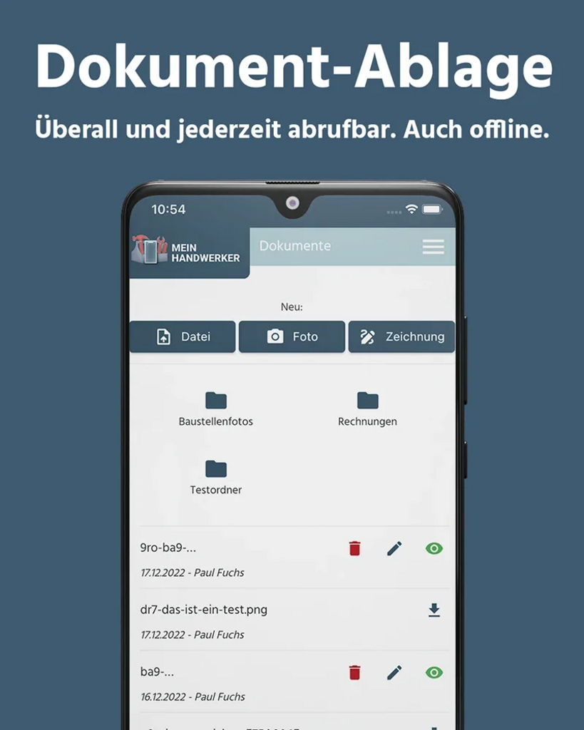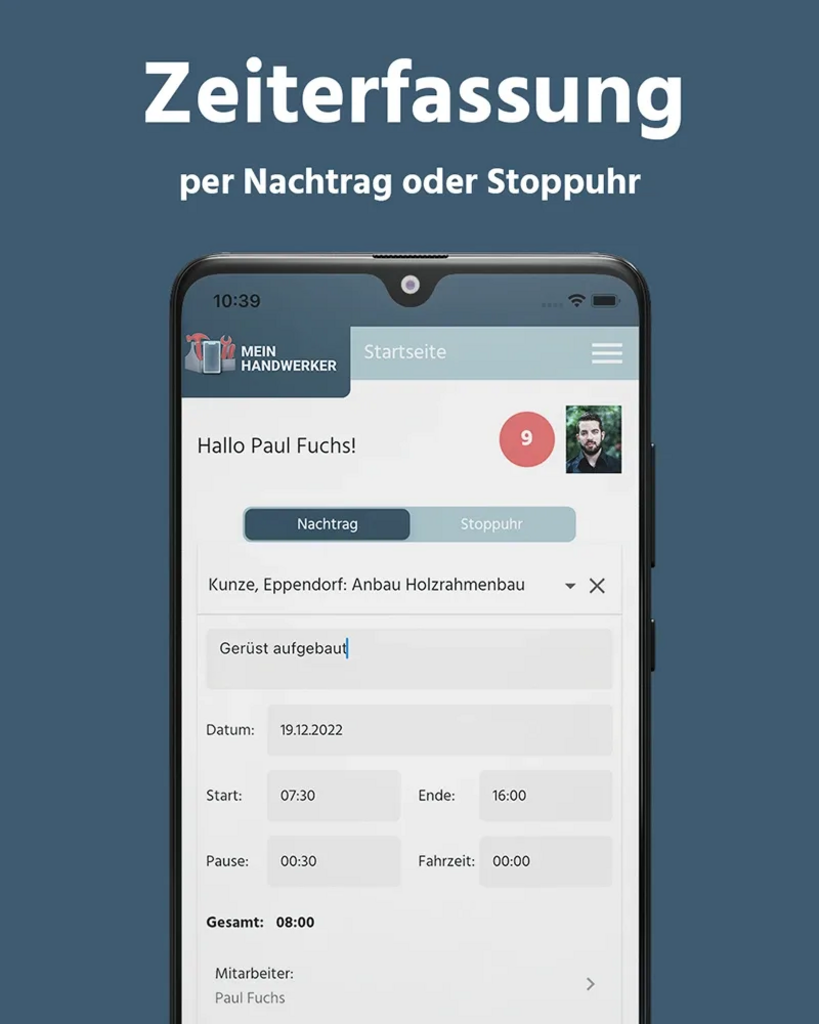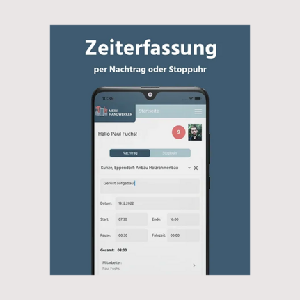 App mit Zeiterfassung, Rapporten, Bautagebuch, u.v.m.! MeinHandwerker wurde von Handwerkern für Handwerker entwickelt und zeichnet sich durch Ihre einfache Bedienung aus.