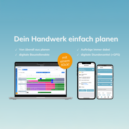 Mit planbar gestaltest du die Verwaltung deiner Aufträge und Mitarbeiter so mühelos wie nie zuvor. Unsere digitale Plantafel ermöglicht eine flexible Planung, selbst bei kurzfristigen Änderungen. Deine Mitarbeiter erhalten sämtliche relevanten Informationen direkt auf ihren Mobilgeräten (iOS & Android) und können gleichzeitig ihre Arbeitszeit, auftragsbezogen oder nicht, mithilfe von GPS erfassen. Durch die Nutzung unserer digitalen Baustellenakte gehören verlorene Fotos oder Notizen der Vergangenheit an. Der integrierte Chat ermöglicht zudem einen schnellen und effizienten Austausch. Dank der Verknüpfung mit Lexware Office kannst du deine Aufträge mit einem Klick an planbar übermitteln und sparst doppelt Zeit.