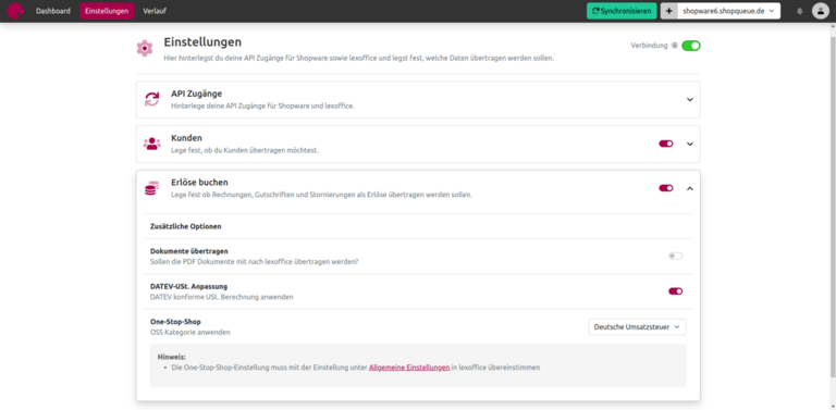 shopqueue sorgt als Webservice dafür, dass alle Umsätze aus shopware 6 automatisch in Lexware Office gebucht werden.