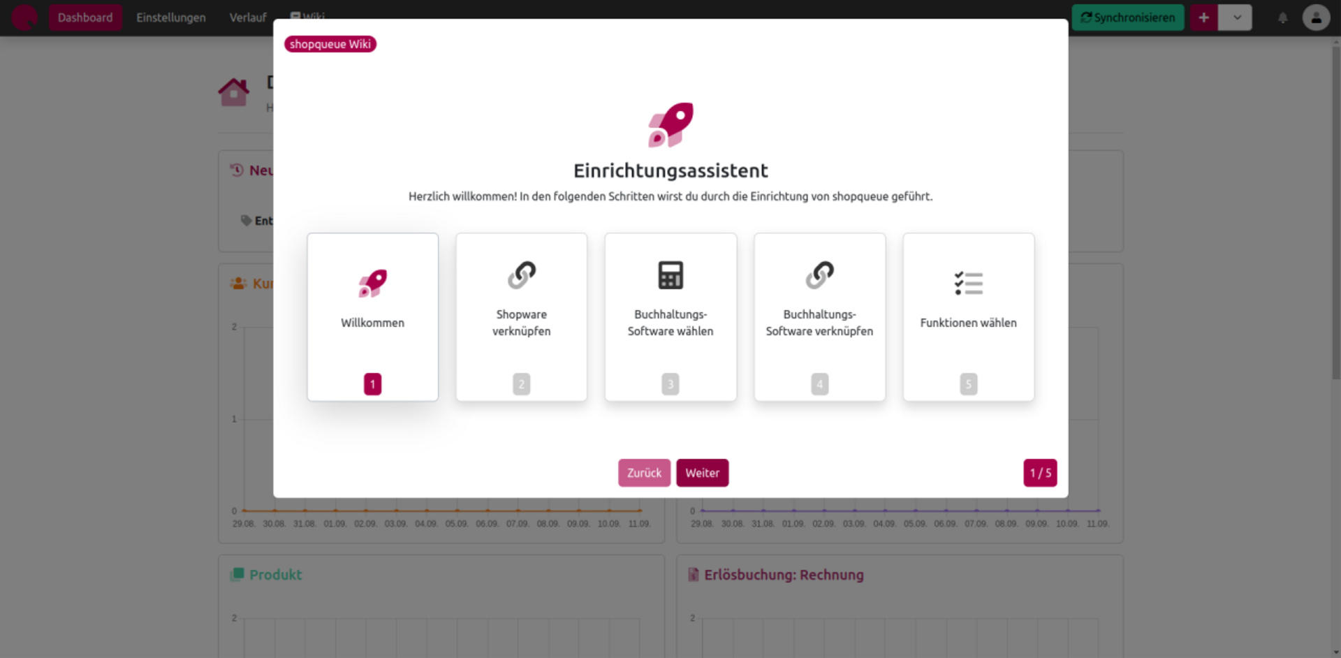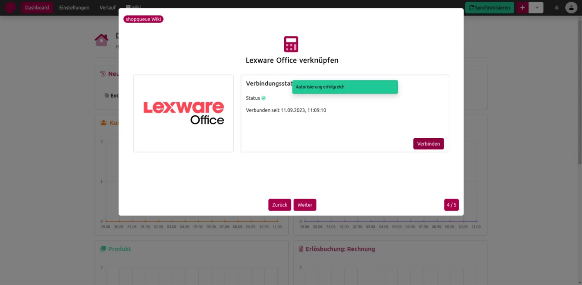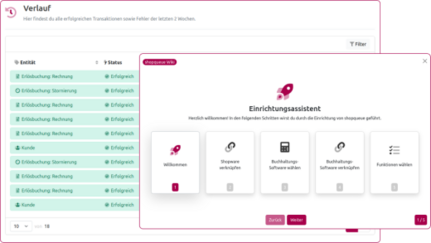 Registrieren, Anmelden und mit unserem Einrichtungsassistenten shopware und Lexware Office anbinden, anschließend Funktionen wählen, fertig.