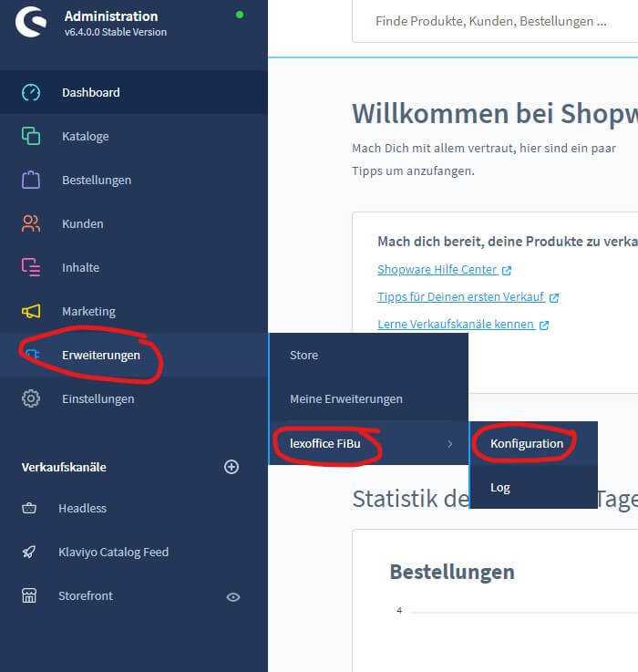 Plugin im Shop installieren, Plugineinstellungen konfigurieren und Lexware Office mit dem Shop verbinden.