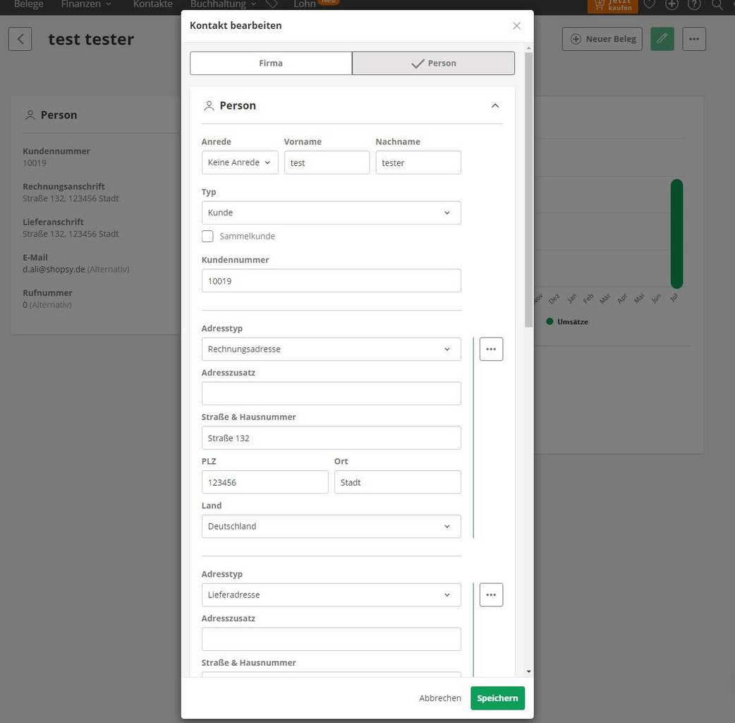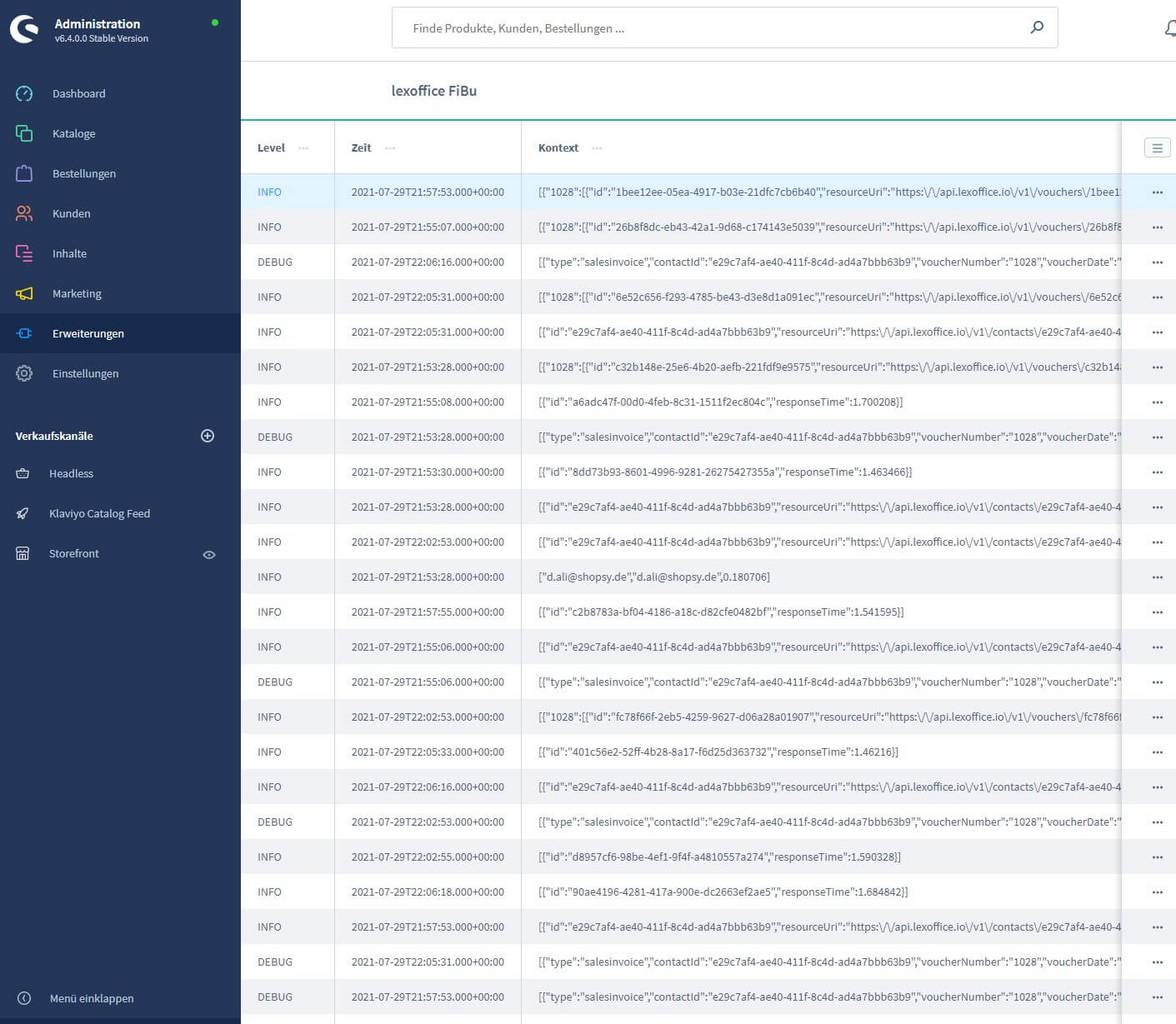 Kunden werden anhand der Bestelldaten in Lexware Office angelegt sofern noch nicht vorhanden. Das in Shopware erstellte PDF wird ebenfalls zu Lexware Office übermittelt.