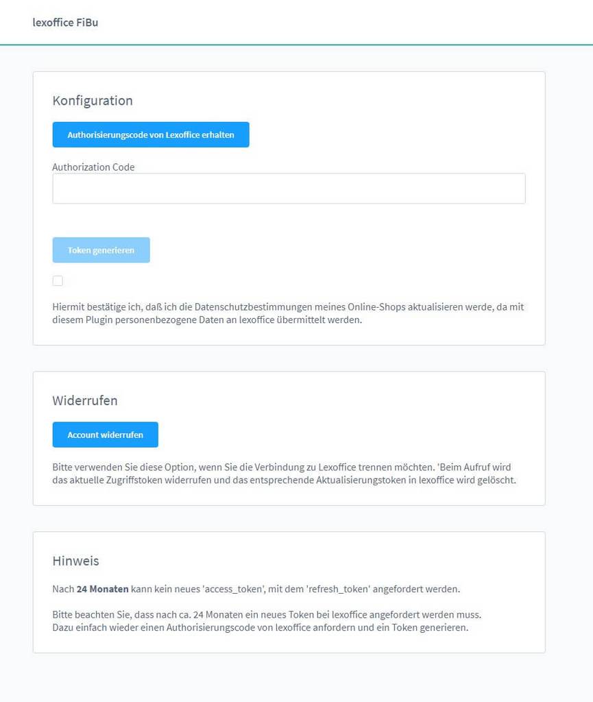 Plugin im Shop installieren, Plugineinstellungen konfigurieren und Lexware Office mit dem Shop verbinden.