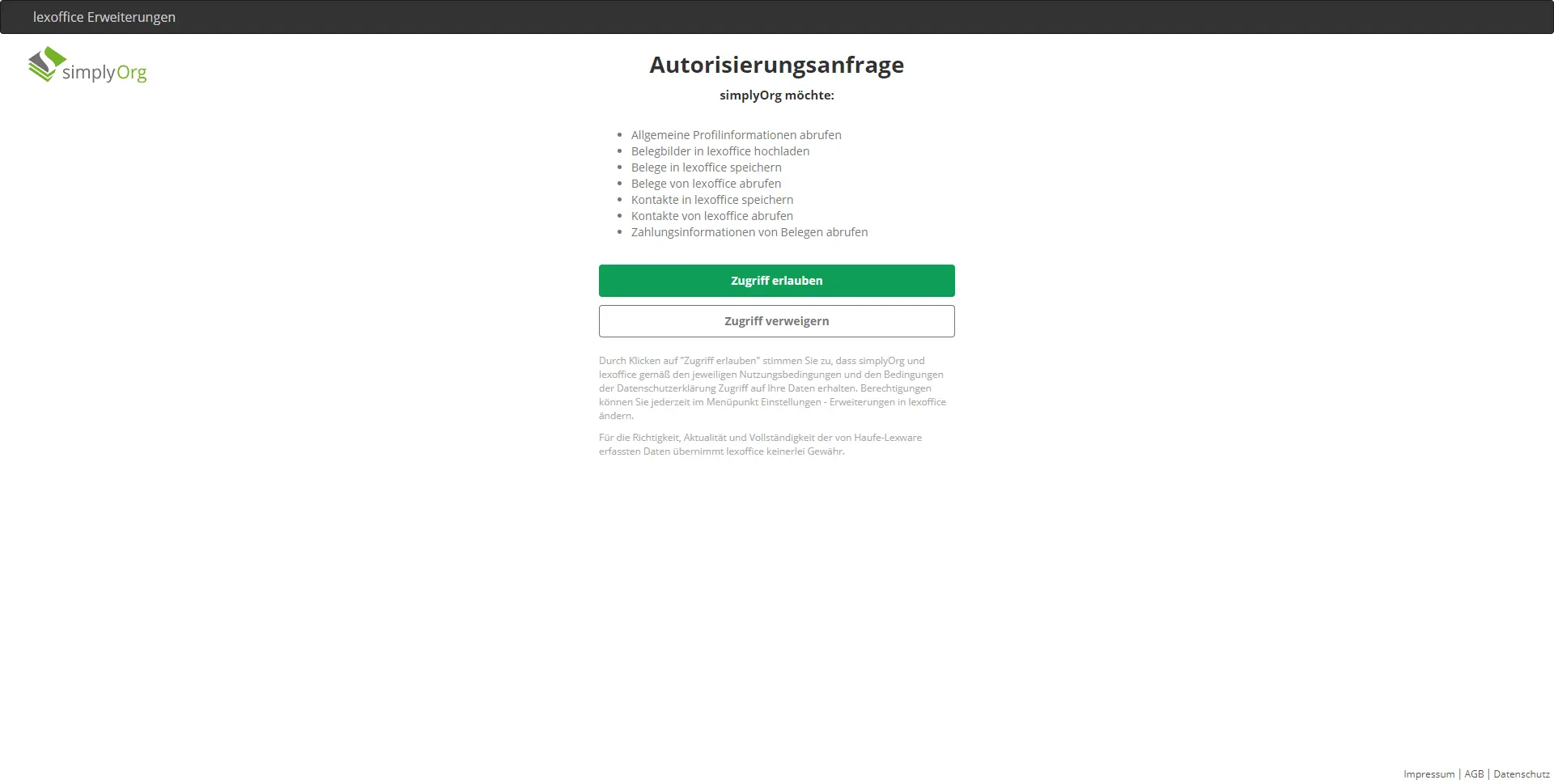 Bitte beachte, dass die Nutzung der Erweiterung gemäß den Nutzungsbedingungen, den AGB und der Datenschutzerklärung von simplyOrg erfolgt.