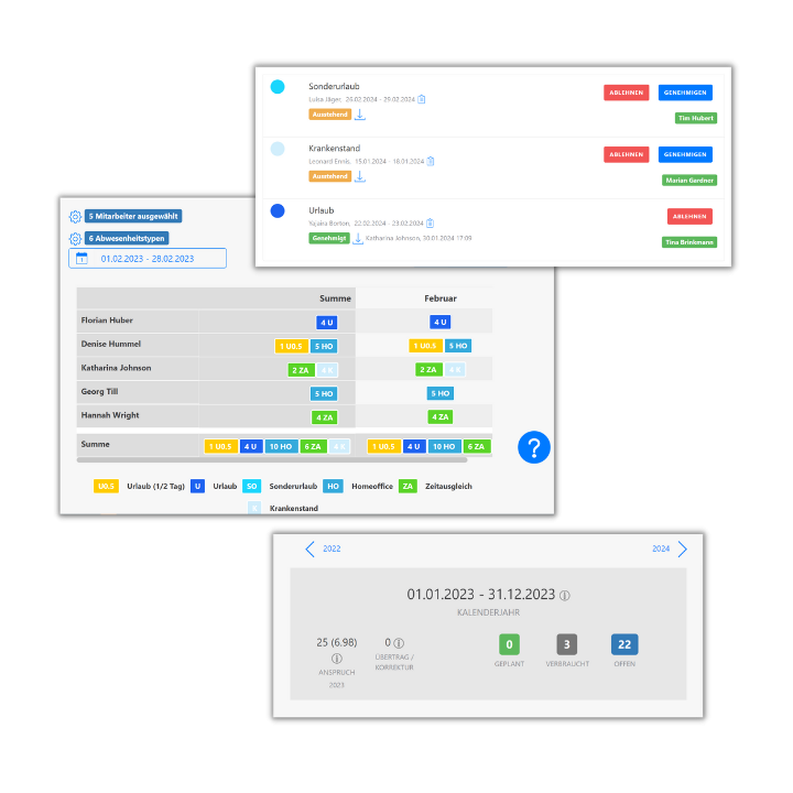 - Abwesenheitsverwaltung inkl. Abwesenheitsquoten