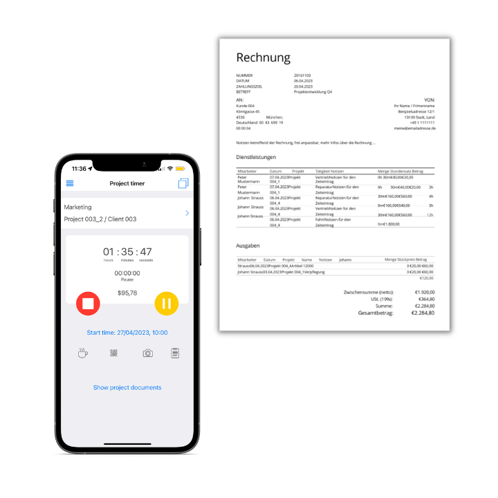 - Projektzeiterfassung mit integrierter Rechnungstellung