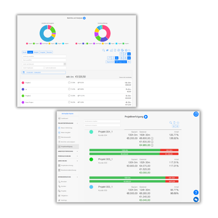 TimeTrack bietet flexible Zeiterfassungslösungen: mobil über Web und App oder stationär per Zeiterfassungsterminal und Tablet-App. Die Software ist ideal für mittlere bis große Unternehmen, die ihre Personalzeitwirtschaft effizient und automatisiert organisieren möchten. Mit umfassenden Funktionen für Arbeitszeiterfassung, Projektmanagement und Personaleinsatzplanung ist TimeTrack die perfekte Ergänzung zu Buchhaltungs- und HR-Systemen.