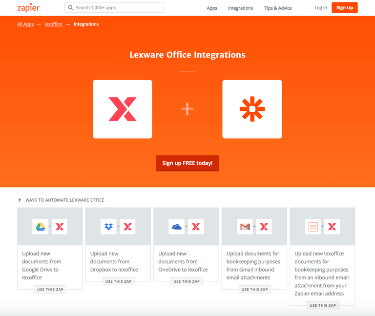 Zapier verbindet Lexware Office mit vielen weiteren Anwendungen (z.B. Dropbox, Gmail,…)