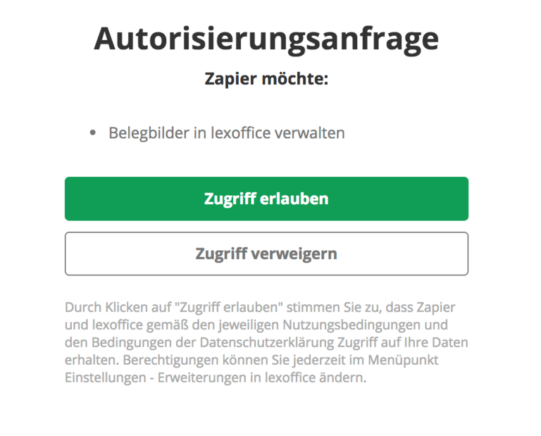- Bestätige die Autorisierungsanfrage, dass Zapier auf dein Lexware Office zugreifen darf.