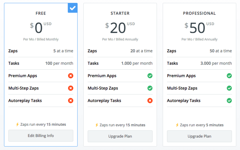 Alle Informationen zu den Preisen für Zapier findest du direkt auf der Zapier Webseite.
