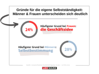 Die Gründe für eine Selbständigkeit sind divers und vielschichtig. Während Männer sich häufiger aufgrund von Selbstbestimmung gründen (28%), möchten Frauen mehrheitlich ihre Geschäftsideen (24%) verwirklichen.