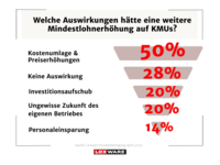 Finanzielle Schmerzgrenzen werden erreicht, was langfristig Mitarbeiterbindung erschwert. Eine mögliche Erhöhung des Mindestlohns könnte für viele Unternehmen Preiserhöhungen zur Folge haben, was wiederum zu Umsatzverlusten führen könnte. Die aktuelle Situation erfordert dringend bessere Rahmenbedingungen und politische Maßnahmen, wie Bürokratieabbau und Investitionsförderungen, um die Situation von Kleinst-, Klein- und mittleren Unternehmen nachhaltig zu verbessern.