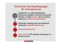 Obgleich Frauen ihre Unternehmen oft gut durchdenken und risikoarm planen, stehen Gründerinnen vor schlechteren Startbedingungen aufgrund finanzieller Ressourcen, einem fehlenden Netzwerk und der Herausforderung, Care-Arbeit neben der Unternehmensführung zu bewältigen.