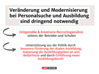 Die Ursachen liegen teilweise in fehlender Berufsorientierung in Schulen, wie 50 Prozent der Azubis und 45 Prozent der Ausbilder in der Umfrage angeben. Die Unternehmen stehen folglich in der Pflicht, ihre Rekrutierungsstrategien zu modernisieren, während die Politik ist gefordert, die duale Ausbildung besser zu fördern und an die Wirtschaftsbedürfnisse anzupassen.
