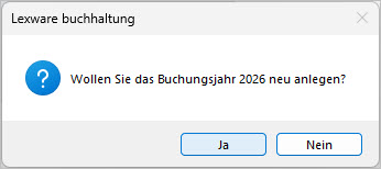 - Bestätigen Sie die Abfrage zur Anlage des neuen Buchungsjahres.